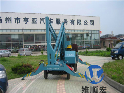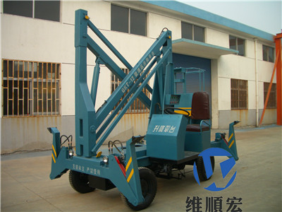曲臂式高空作業平臺是指起升機構由高強度型鋼臂架鉸接而成,并通過液壓油缸實現伸展和收縮的一種高空作業機械。(1)能夠跨越空間障礙進行高空作業。(2)可進行360度旋轉作業,增大工作面積。(3)選用高品質柴油發動機做為驅動動力。(4)配備牽引電瓶,移動方便靈活。(5)平臺上裝有負載傳感器,超載時可報警